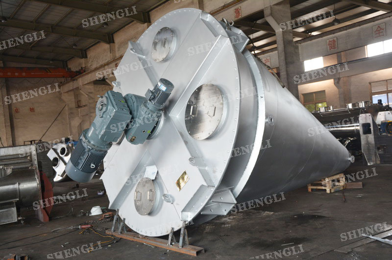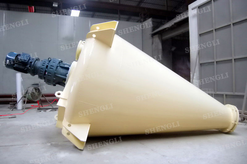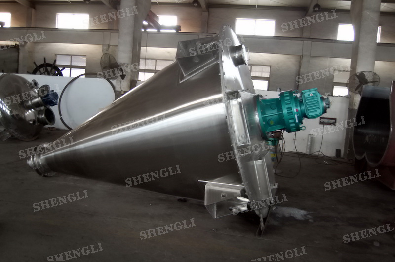 描述:錐形雙螺旋混合機內(nèi)部安裝非對稱傾斜螺旋,雙螺旋自身旋轉(zhuǎn),提升物料,并有公轉(zhuǎn)減速箱驅(qū)動,沿錐體中心軸公轉(zhuǎn),360度攪拌物料,擁有非破壞性攪拌以及快速且無殘留卸料的特點。