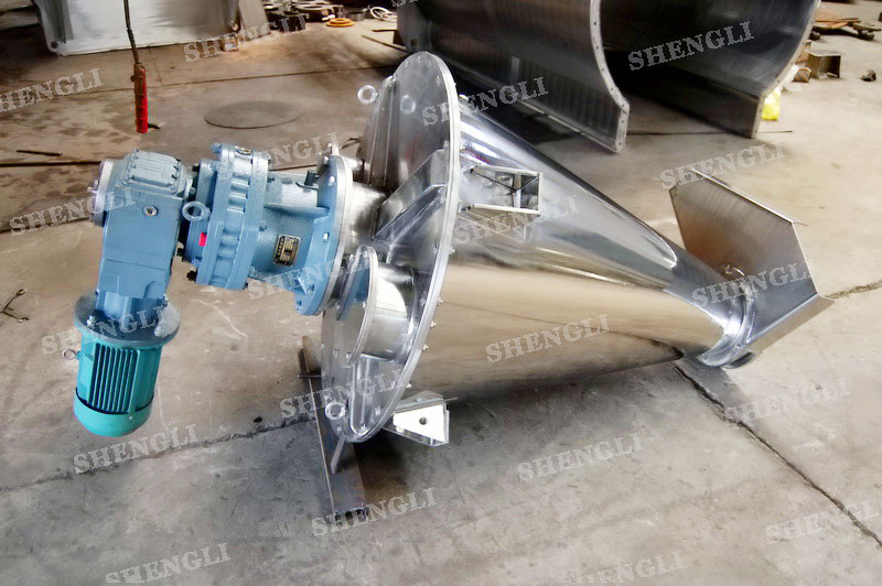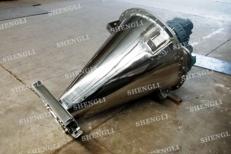 描述:錐形雙螺旋混合機(jī)內(nèi)部安裝非對(duì)稱傾斜螺旋,雙螺旋自身旋轉(zhuǎn),提升物料,并有公轉(zhuǎn)減速箱驅(qū)動(dòng),沿錐體中心軸公轉(zhuǎn),360度攪拌物料,擁有非破壞性攪拌以及快速且無殘留卸料的特點(diǎn)。該設(shè)備配置氣動(dòng)錯(cuò)位閥,內(nèi)外表面做鏡面處理,錐體中心軸加噴液裝置。