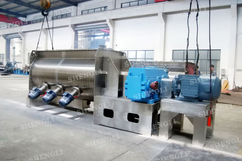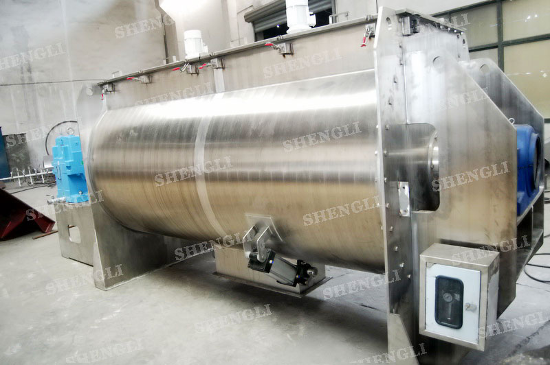 工作原理:槳葉攪拌機(jī)采用U型筒體,內(nèi)設(shè)平行主軸,主軸上安裝若干傾角式槳葉刀,不僅能快速高效的攪拌物料,且不會破壞物料,不會卡料。