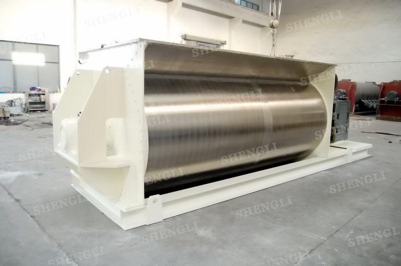 工作原理:臥式攪拌機(jī)采用U型筒體,內(nèi)設(shè)平行主軸,主軸上安裝若干傾角式槳葉刀,不僅能快速高效的攪拌物料,且不會(huì)破壞物料,不會(huì)卡料。