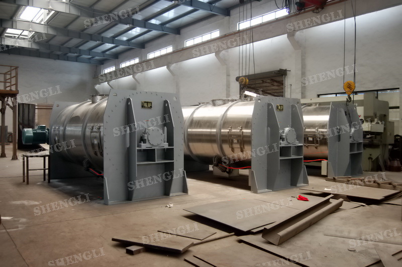 工作原理:犁刀混合機采用臥式圓柱筒體,內(nèi)設(shè)平行主軸,主軸上安裝若干犁式刀頭,通過較快的旋轉(zhuǎn)速度,分割、重合物料,實現(xiàn)快速攪拌的功能,常結(jié)合1500-3000轉(zhuǎn)高速剪切飛刀相互作用。