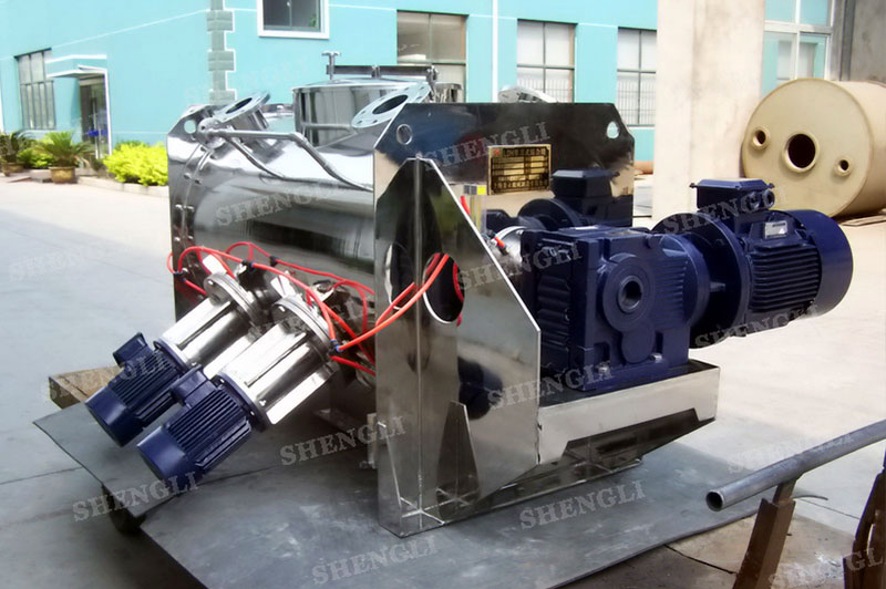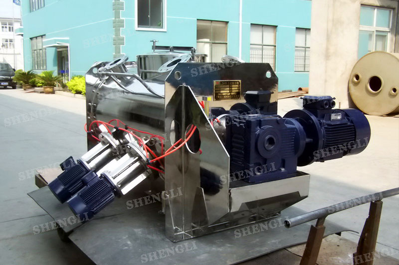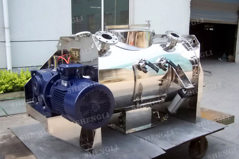 工作原理:犁刀混合機采用臥式圓柱筒體,內(nèi)設(shè)平行主軸,主軸上安裝若干犁式刀頭,通過較快的旋轉(zhuǎn)速度,分割、重合物料,實現(xiàn)快速攪拌的功能,常結(jié)合1500-3000轉(zhuǎn)高速剪切飛刀相互作用。