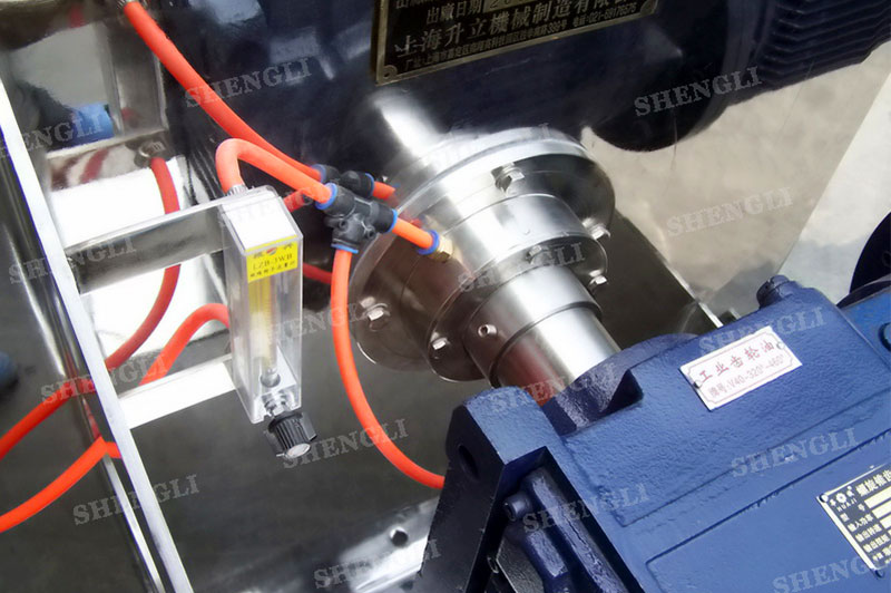 設(shè)備配置:配置K系列減速機,直角安裝;搭載兩臺3KW的高速飛刀;開設(shè)快開式檢修門及投料口;出料口采用氣動翻板閥;主軸與飛刀主軸采用氣密封;飛刀處設(shè)加液噴頭;設(shè)備內(nèi)、外表面鏡面拋光。
