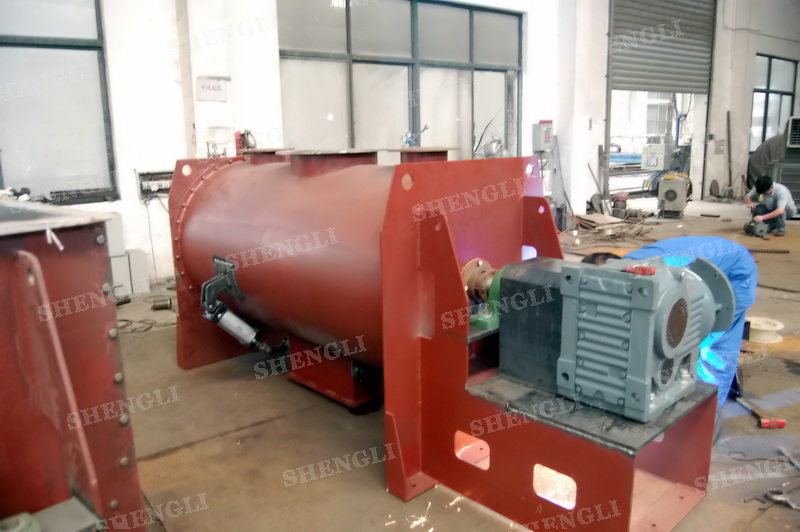 設(shè)備配置:配置K系列減速機(jī),直角安裝;筒側(cè)開(kāi)設(shè)快開(kāi)式檢修門(mén)附安全開(kāi)關(guān);出料口采用氣動(dòng)翻板閥;設(shè)備主軸采用填料密封。