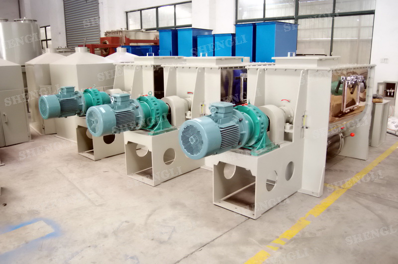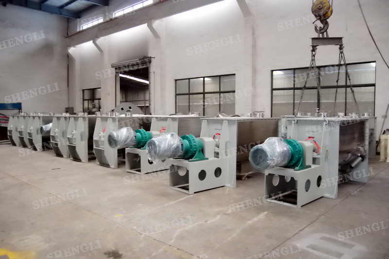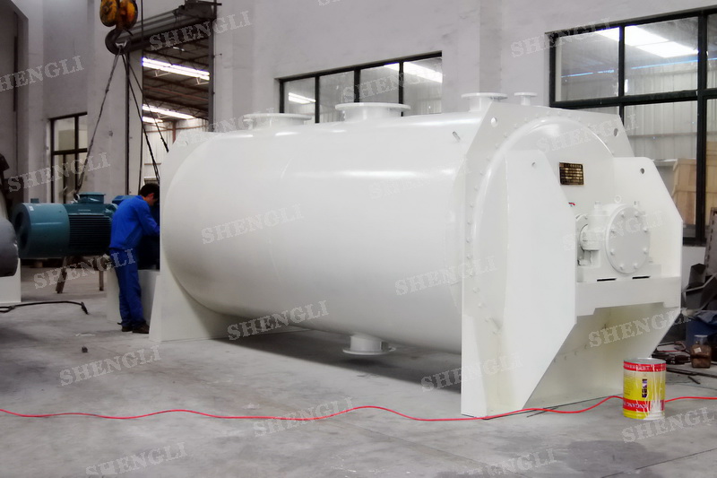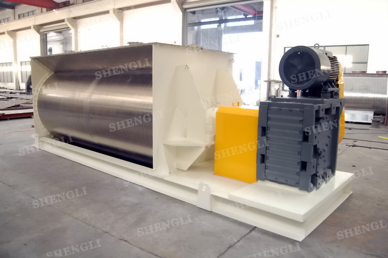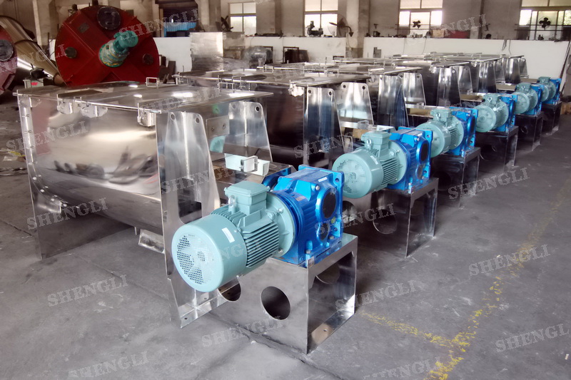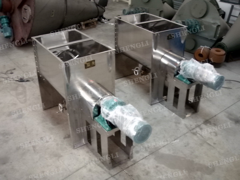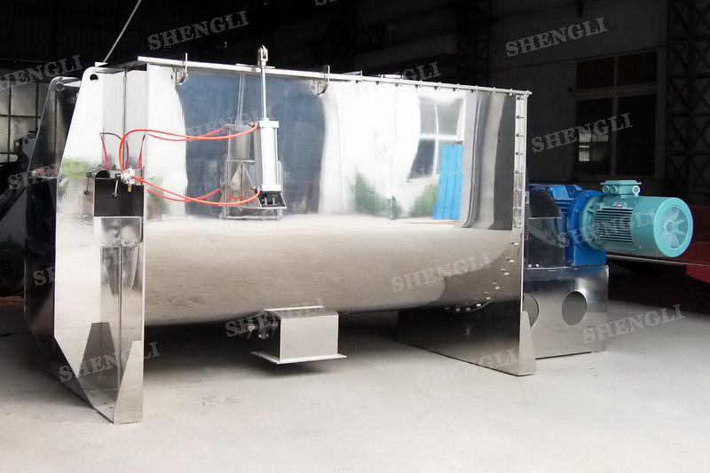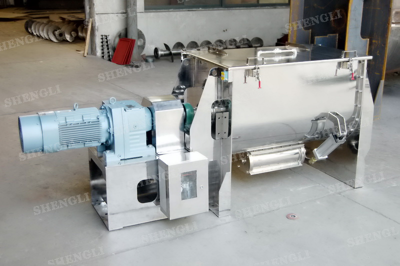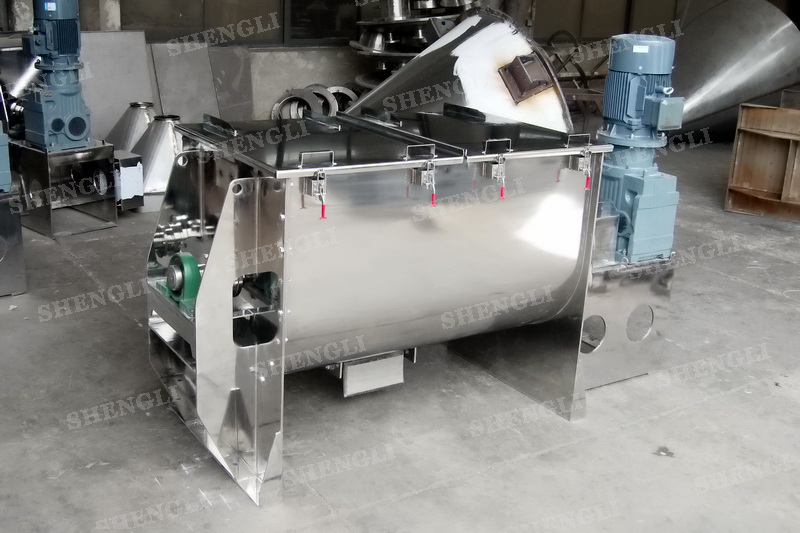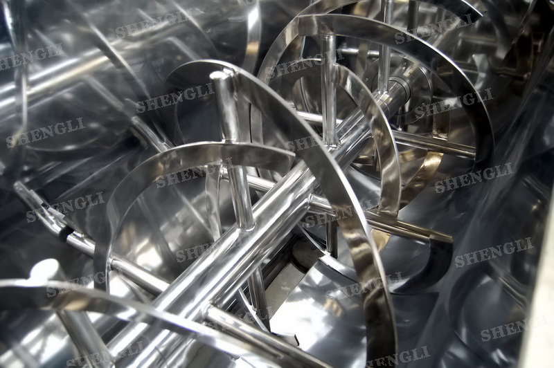 工作原理:螺帶混合機采用U型筒體,內(nèi)裝平行主軸,主軸上安裝正反雙向的盤條螺帶,不同維度螺帶分內(nèi)螺帶與外螺帶,物料在螺帶的驅使下反復參混,能夠快速高效的混合。