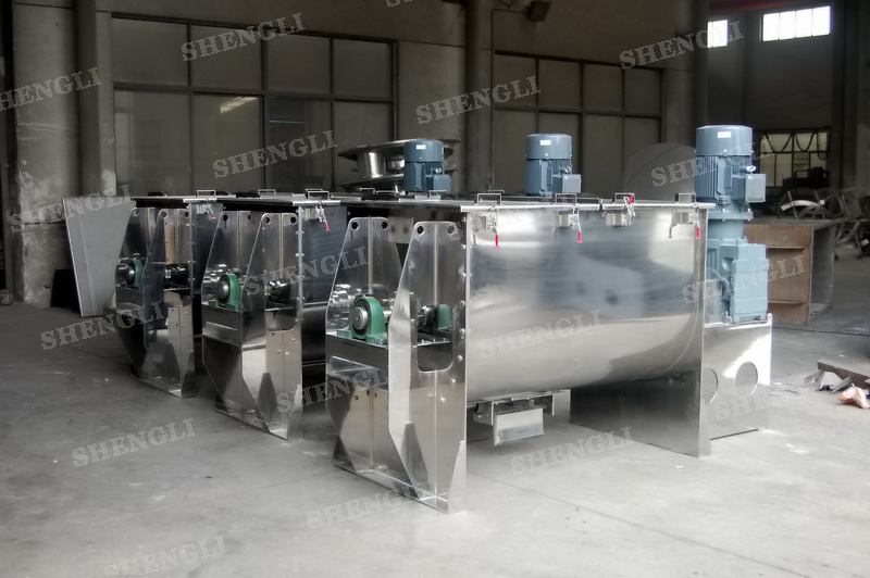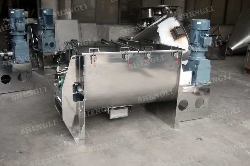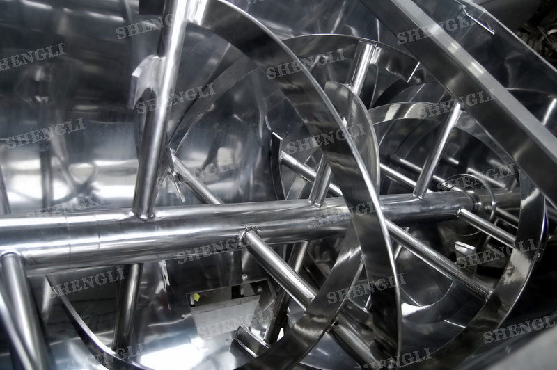工作原理:螺帶臥式混合機(jī)采用U型筒體,內(nèi)裝平行主軸,主軸上安裝正反雙向的盤條螺帶,不同維度螺帶分內(nèi)螺帶與外螺帶,物料在螺帶的驅(qū)使下反復(fù)參混,能夠快速高效的混合。