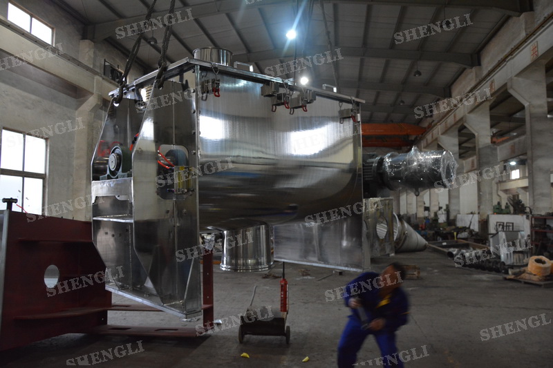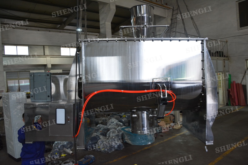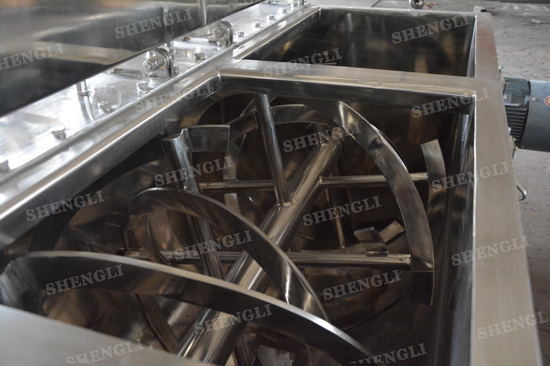 工作原理:螺帶式混合機(jī)采用U型筒體,內(nèi)裝平行主軸,主軸上安裝正反雙向的盤條螺帶,不同維度螺帶分內(nèi)螺帶與外螺帶,物料在螺帶的驅(qū)使下反復(fù)參混,能夠快速高效的混合。