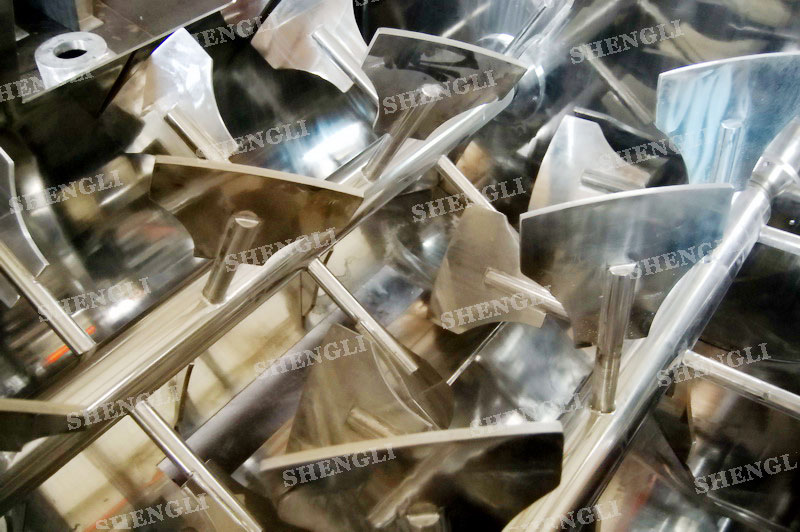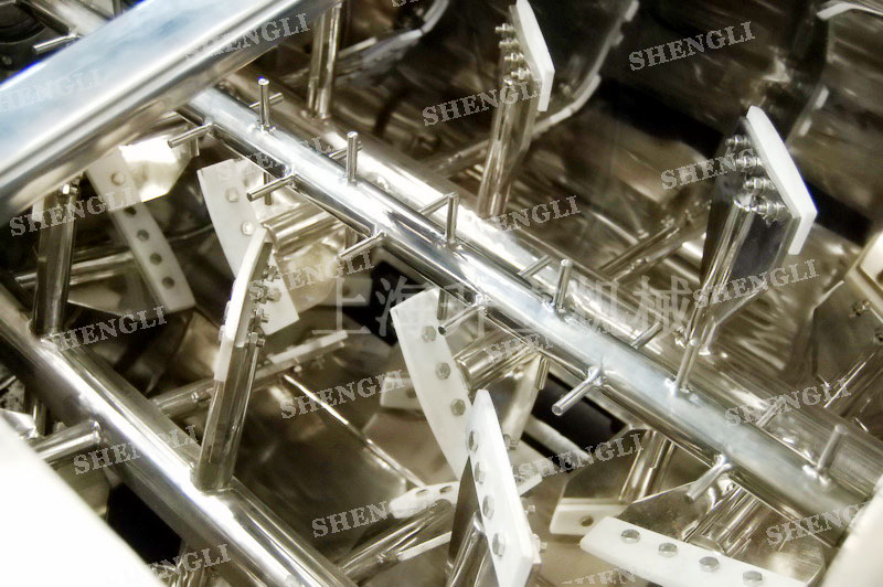 工作原理:無重力混合機采用雙U型筒體,內(nèi)裝平行的雙主軸,主軸設有對稱的多組槳葉,其雙軸的運行軌跡部分重合形成嚙合空間,雙軸在受雙電機同步驅(qū)動,同步的對稱向外翻攪物料,致使物料能夠達到瞬間失重點,該設備具備高效物料無差別的混合能力。