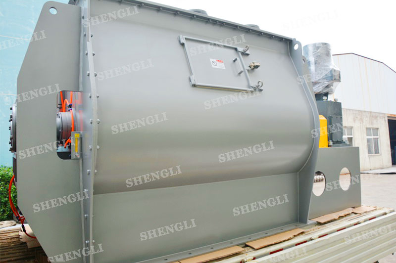 工作原理:臥式干粉攪拌機(jī)采用雙U型筒體,內(nèi)裝平行的雙主軸,主軸設(shè)有對稱的多組槳葉,其雙軸的運(yùn)行軌跡部分重合形成嚙合空間,雙軸在受雙電機(jī)同步驅(qū)動,同步的對稱向外翻攪物料,致使物料能夠達(dá)到瞬間失重點(diǎn),該設(shè)備具備高效物料無差別的混合能力。